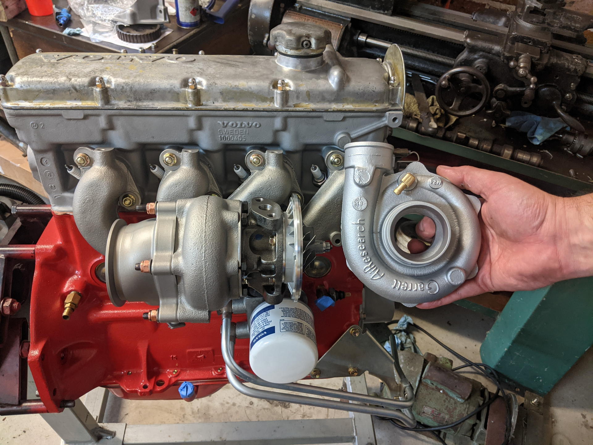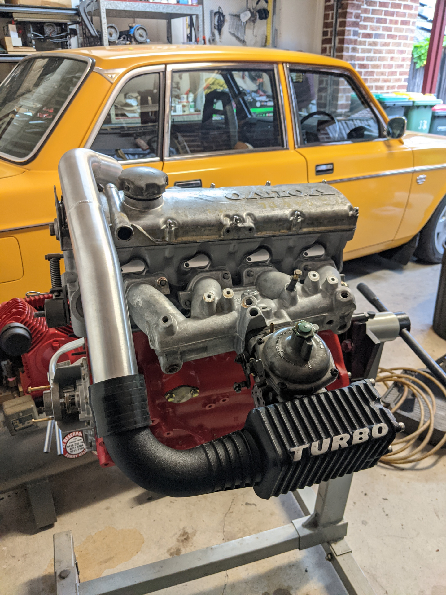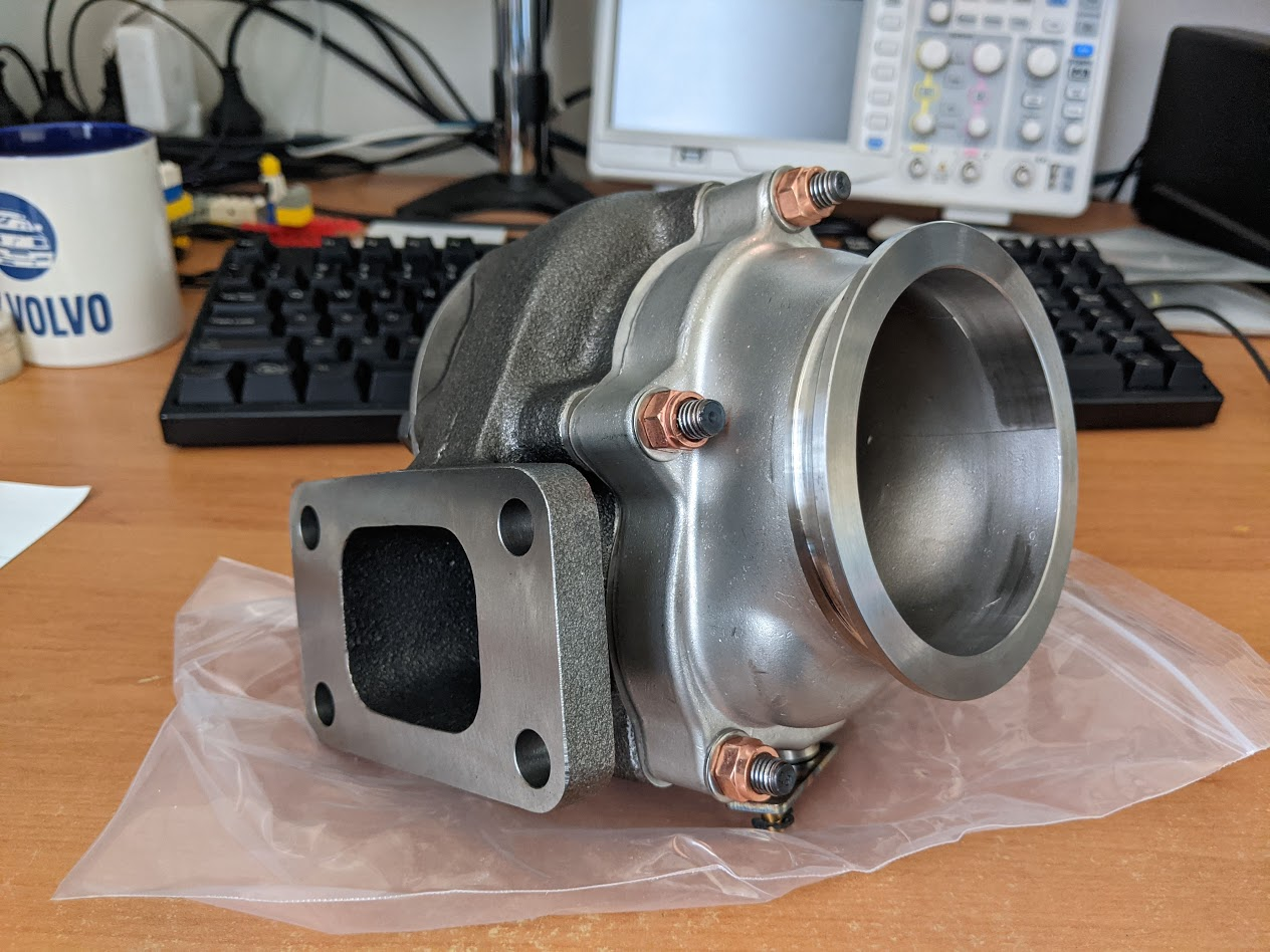 Bunch of stuff came back from ceramic/powder coating today. The CHRA arrived also. I need to swap the compressor wheel with the right one for this housing, that wheel hasn't arrived yet (quite hard to get hold of actually, Garrett part 409096-0008 if you need it).