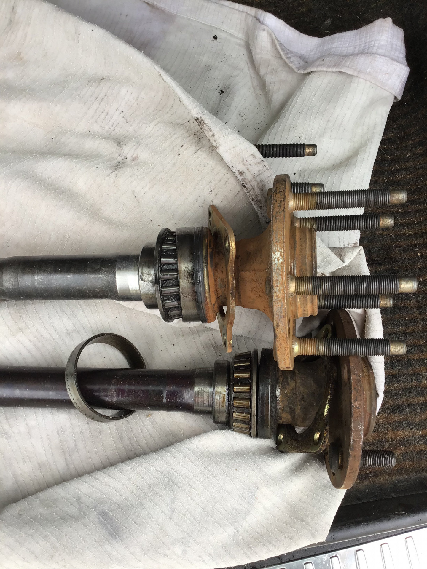We pulled a halfshaft from a 1980 parts car and then one from the 1978 rally car, which you may remember is fitted with a 1987 diff.