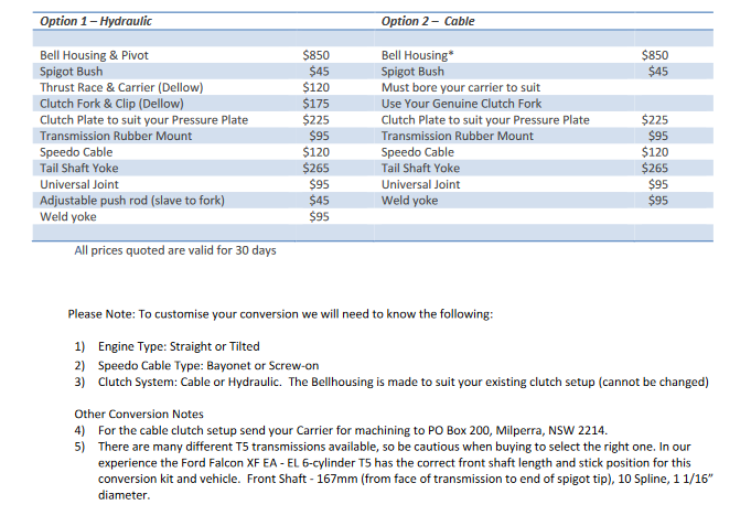 Adding up all the parts needed for the Dellows bell to work with a Ford 6-pot box, per above: