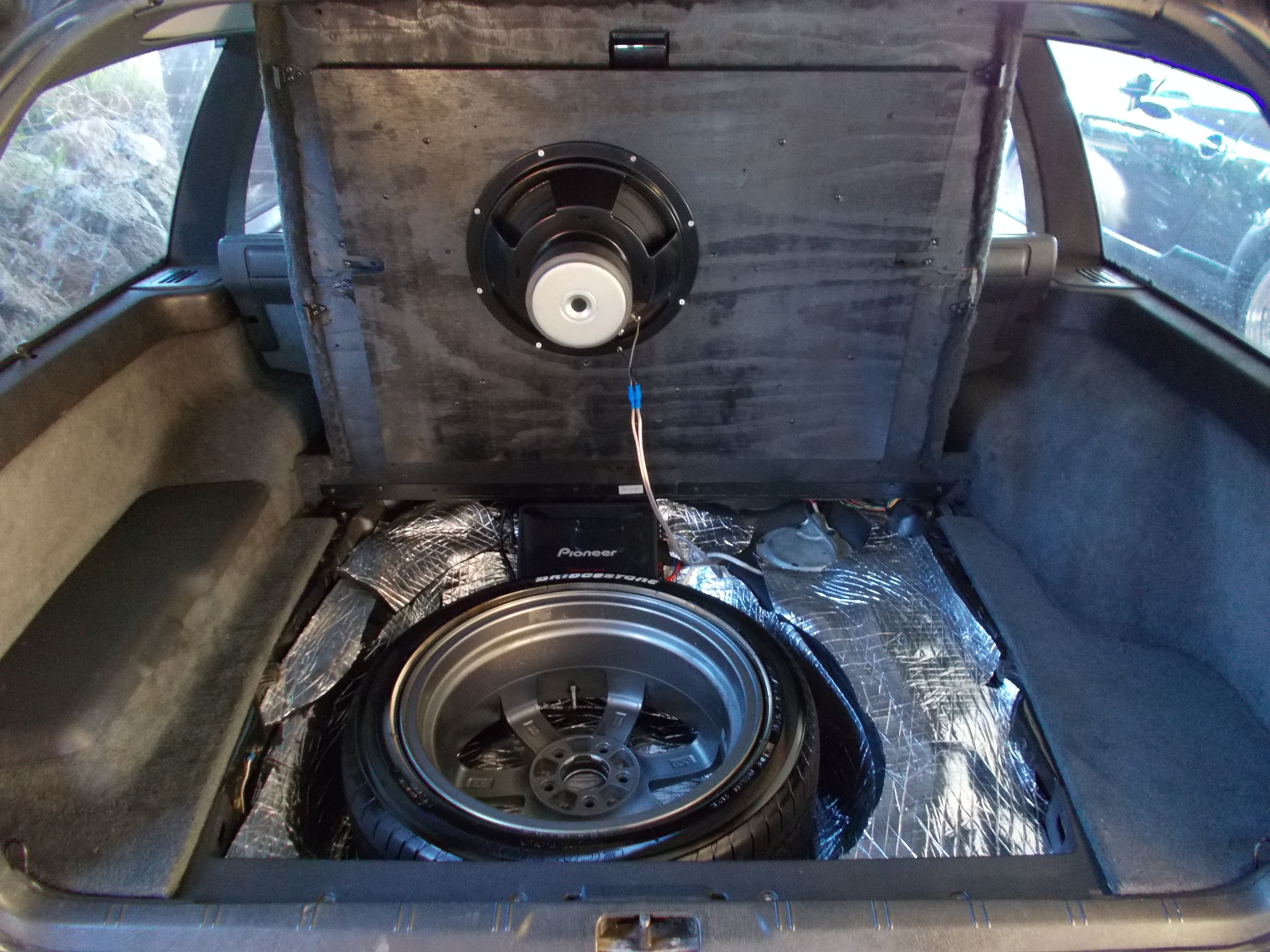 while the floor was out i gave it a few coats of paint also took the speaker out and used another can of glue so the carpet sticks to the wire mesh very well ...
