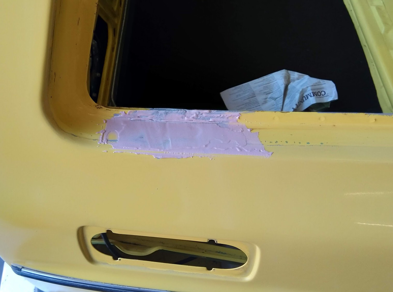 Got the bog sanded and primed the whole ledge below the window. Once it’s dry I’ll sand it back and apply a top coat, then the black tape can go on. Hope the repair outlasts me! Guess I should drill a new drain hole somewhere in the ledge...not too close to the original rust repair though.