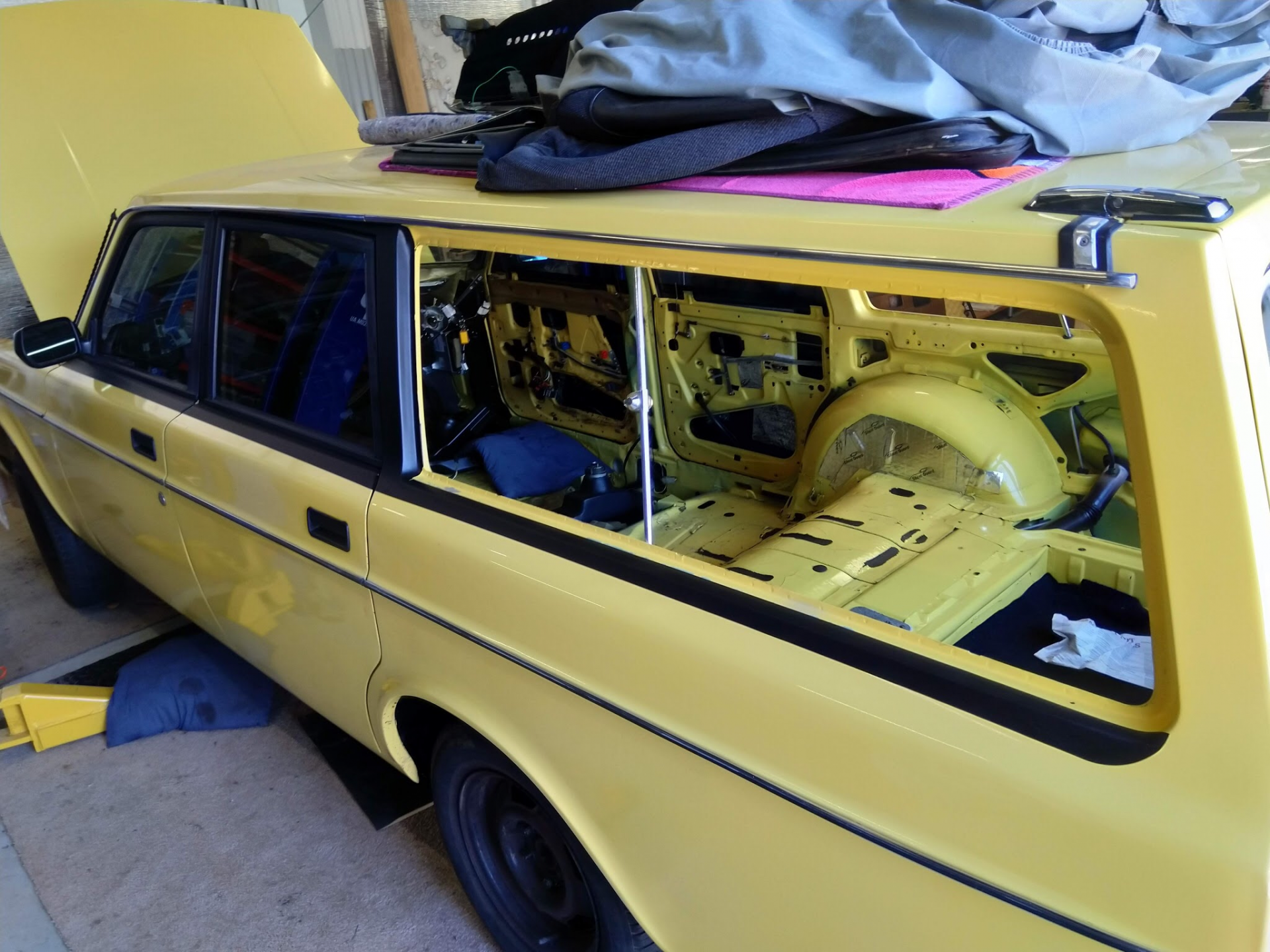 Got the left side rear quarter tape strip stuck on today, so now the rear window could go in. May wait as I think I need to come up with some sort of internal trim piece to cover the C pillar. Not going to buy the exxy plastic ones from a late model wagon...may make something up with thin aluminium wrapped in black vinyl? Food for thought.